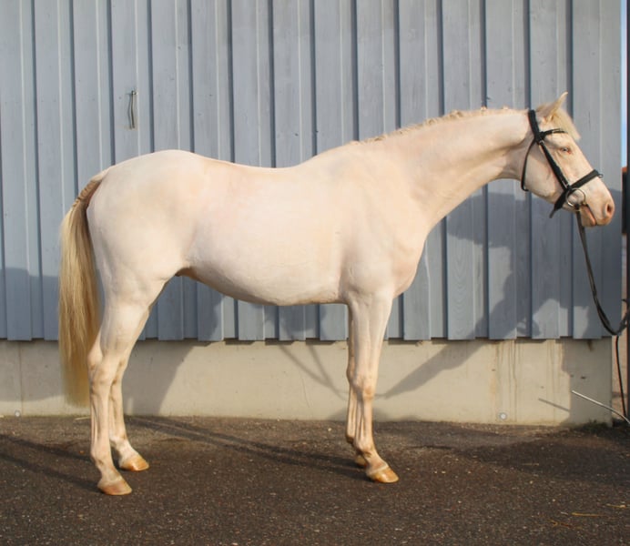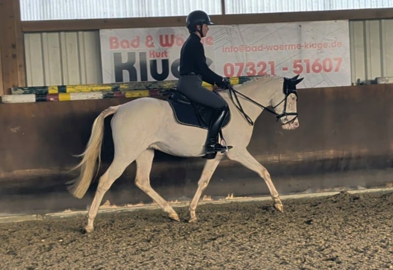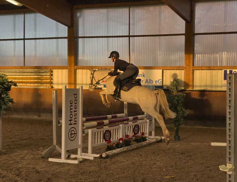 Dieses Jahr in Stimmung für ein ganz besonderes Weihnachtsgeschenk? Dann ist dieser wunderschöne 4 jährige Ponywallach genau das richtige! Im Umgang und unter dem Reiter steht's brav - Bocken, Steigen, Abgehen oder sonstige Unarten sind hier Fehlanzeige. Erst seit ein paar Monaten unter dem Sattel verfügt der Schönling über 3 gute Grundgangarten und ist mit guten Rittigkeitswerten ausgestattet. In der dressurmäßigen Arbeit durch sein ideales Temperament einfach zu reiten -dazu leicht im Genick und fein in der Hand. Er beherrscht die dressurmäßigen Grundlagen und springt bereits einen kleinen Parcours. Am Sprung zeigt der Ponywallach einiges an Talent - seine gute Technik, Reaktionsschnelligkeit und Vorsicht versprechen bei weiterer Ausbildung und Festigung die Möglichkeit zum Schleifensammeln! Fliegende Wechsel beherrscht der kleine Mann aufgrund seiner Geschicktheit ebenfalls bereits. Auch der Blick auf sein Pedigree lässt auf eine sportlich erfolgreiche Zukunft hoffen: New Prince M, der auf den prämierten New Age (Naseweiss Z) zurück geht, ist selbst bis zu Pony FEI-Dressuren erfolgreich unterwegs. Zudem konnte er gegen Großpferde Eignungsprüfung gewinnen. Großvater Nemax konnte sich gegen Großpferde bis hin zu Inter I behaupten und ist auch in Anbetracht seiner Vererberleistung ein absoluter Ausnahmeponyhengst. Auch die bewährten Ponyhengste FS Champion de Luxe, FS Golden Highlight und Calypso, die allesamt als ''Sportponymacher'' gelten, finden sich im Pedigree dieses hübschen Ponys wieder.