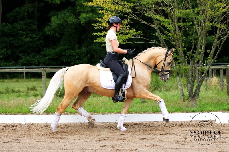 Niemieckie kucyki sportowe, wałach (wcześniej ogier) *2020, około 1,48 m ⚜️ Damenheld x Power and Paint ⚜️ ☀️ Wspaniałe kucyki FEI do dalszego szkolenia ☀️ Uroczy wałach z dużą charyzmą, piękną szyją, wyraźną głową, dobrym grzbietem i prawdziwym „blaskiem ogiera”. Został niedawno wykastrowany i teraz regularnie pracuje. Młody koń, który rozwija się z dnia na dzień i sprawia wiele radości. Jest już sklasyfikowany w klasie A w ujeżdżeniu i ma trzy bardzo dobre podstawowe chody, z których szczególnie wyróżnia się krok. Ekscytujący kuc z perspektywami na trasę FEI. Lokalizacja: powiat Ammerland Dostępny jest dobry, ale nieaktualny przegląd (w tym grzbiet). Szczegółowe informacje pod numerem: +49 173 3013499