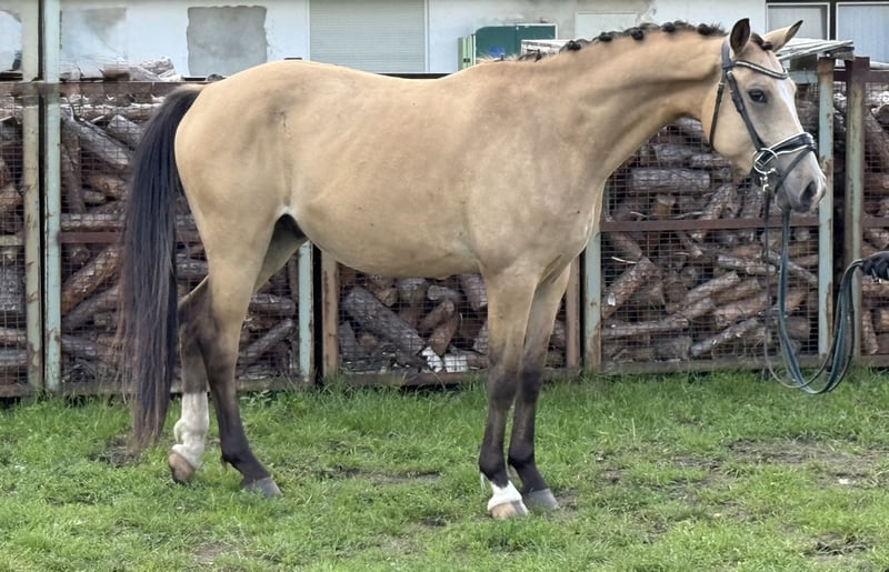 For sale is this stylish 4-year-old gelding. This beautiful gelding is ready to start his training. He is familiar with the bridle and lunge girth. Daily stable life, going in and out, as well as trailer loading, are normal for him. Very interesting for trainers! With his very good gaits and his beautiful color, he is a real eye-catcher. He is accustomed to all types of housing. A veterinary check with no findings is available! For more information, feel free to contact me personally! Tel.: 015158421924