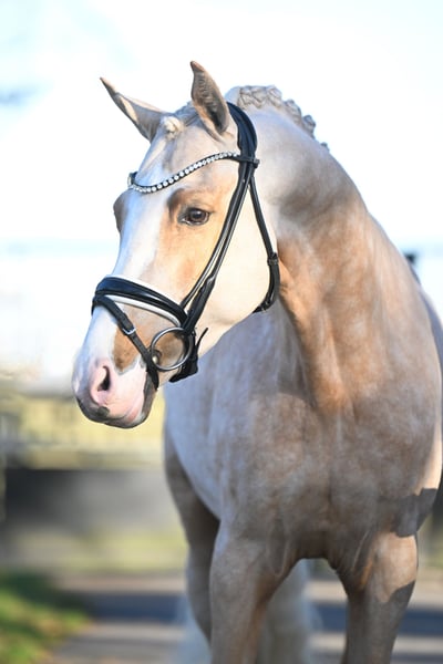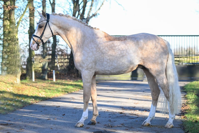 Wir verkaufen aus eigener Erfolgszucht den ehemaligen 2. Reservesieger der Reitponykörung 2023. Super easy zu reiten, immer schön in der Anlehnung, stets ehrlich und unerschrocken, liebt es ins Gelände zu gehen, kennt Führanlage, Weide, Paddock, Halle, Dressurviereck, Hunde, Traktoren etc. Dem Ponymaß deutlich entwachsen mit 155 cm schlug bei unserem XXL Barbie Pony deutlich der hoch erfolgreiche Vater FS Numero Uno durch. Perfektes Dressurpony für Mutter - Tochter Gespann.
