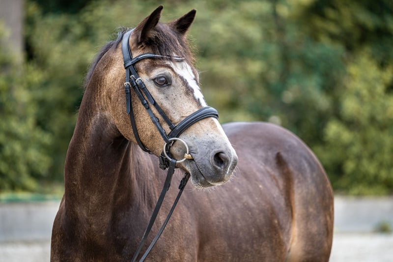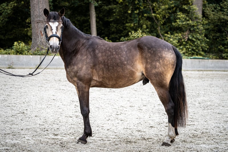 We are selling our six-year-old German Riding Pony, 'Hesselteichs Donnerblitz,' sired by Hesselteichs Don't Forget Me × Lucky Lao I. He is confident and eager to learn, and has been ridden in all three gaits. He has already completed some small jumps under saddle. He is capable of lateral movements from the ground and can be parked at the mounting block. Additionally, he enjoys pole work and calmness training. He is very social and gets along well with other horses. Currently, he is turned out with another gelding, but he has also shared pastures or paddocks with mares. He is familiar with dogs, cats, cows, and tractors, and remains very relaxed around them. X-ray images from 2023 are available and can be viewed upon request. If interested, we look forward to arranging a viewing appointment.