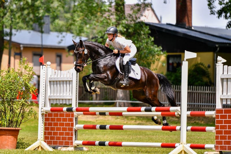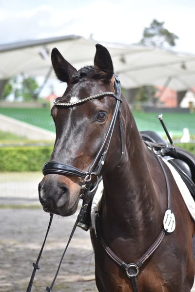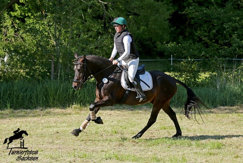 Gin Tonic si distingue per il suo fascino assoluto, la sua voglia di lavorare e le ottime qualità per il salto ostacoli e il concorso completo. Addestrato delicatamente a 4 anni, ha subito ottenuto ottimi risultati nelle prove di dressage e di cavalli da lavoro. Possiede un passo molto ampio, un trotto fluido e un galoppo di grande statura, ben equilibrato. Da quest'anno ha potuto sviluppare ulteriormente il suo talento nel salto. Fin dall'inizio ha impressionato per la sua chiarezza mentale, il galoppo ritmico e la sua ottima maneggevolezza. Ha vinto prove di salto ostacoli e di cross country A** con punteggi fino a 8,7, contro cavalli di grossa taglia. A giugno è stato nominato campione regionale dei pony da cross di 5 e 6 anni di Sassonia-Thüringen. Inoltre, a luglio ha conquistato il titolo di DSP-Champion dei pony da cross. Infine, si è qualificato per il Bundeschampionat a Warendorf. Gin Tonic si presenta sempre coraggioso e dal carattere forte. Durante l'allenamento con i giovani cavalieri, ha trasmesso un senso di sicurezza. Affronta il terreno con affidabilità e calma sia da solo che in gruppo. Viene tenuto in paddock aperto con una mandria mista, è socievole e giocoso, ma sempre amichevole. Durante l'inverno, corre senza ferrature, mentre durante la stagione delle gare indossa le ferrature. È regolarmente vaccinato, dewormed e sottoposto a cura dentale. Non si tratta di una vendita urgente. Gin Tonic viene affidato esclusivamente a una famiglia con standard di eccellenza. Per ulteriori informazioni, non esitate a contattarci al numero 0174 2116959.