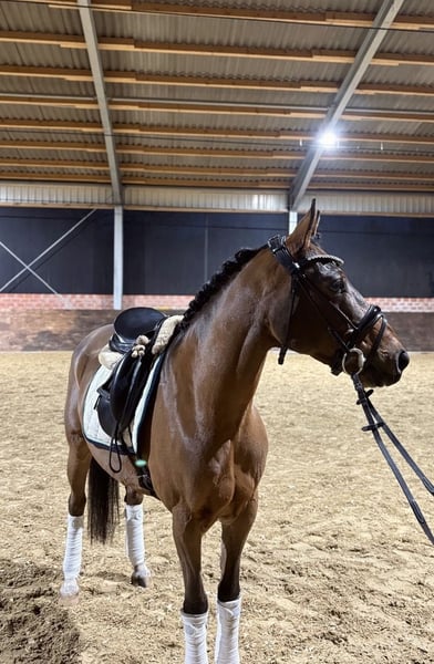 For sale is our 6-year-old gelding Nobeltje. He is sired by Nobel Nagano NRW x Nightstar III. He was born with us and has grown up in loving care. Nobeltje impresses as a sporty pony with three very good basic gaits. He was backed late and shows himself under saddle as very willing to learn, motivated, and clever, always eager to do everything right. In his two previous competition starts, he presented himself as absolutely well-behaved and uncomplicated. He is a pony with a lot of go, always honest and attentive. He is also familiar with outdoor terrain and jumps small fences. As he requires a confident and consistent rider, he is not a beginner pony! We are looking for a 5-star home for him with experienced people who enjoy further developing a talented and strong-charactered pony. Nobeltje will only be given into the best hands! Quality over price! For serious inquiries and further questions, please feel free to contact us!