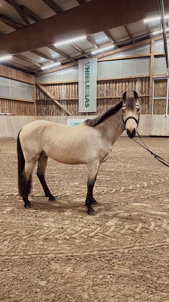 Relampago – 6-jähriges Reitpony / Kleinpferd im Endmaß • Buckskin • Spanische Papiere Relampago ist ein auffälliges, charmantes und angenehmes Pony im sportlichen Endmaß, das nicht nur mit seiner seltenen Buckskin-Jacke, sondern auch mit seiner freundlichen Art überzeugt. Er zeigt sich im täglichen Umgang sowie unter dem Sattel stets kooperativ, neugierig und lernbereit. Bisher wurde er schonend und unverbraucht freizeitmäßig geritten und bringt eine solide Basis sowie sehr gute Voraussetzungen für die weitere Ausbildung mit. Erste Sprünge hat er bereits absolviert und zeigt dabei Talent, Übersicht und Spaß an der Aufgabe. Bei korrekter Winterarbeit kann Relampago bereits nächste Saison im Sport vorgestellt werden. Er ist aktuell barhuf, frisch geimpft und entwurmt, und verfügt über keine Allergien oder bekannten Krankheiten. Eine AKU aus 08/2023 liegt vor. Er kennt sowohl Boxen- als auch Offenstallhaltung und zeigt sich in der Herde absolut verträglich. Ein gesundes, unverbrauchtes Nachwuchspony, das durch seinen Charakter und seine Einstellung viel Freude bereitet und eine tolle Perspektive für Freizeit, Training und Sport bietet. Zubehör kann auf Wunsch und gegen Aufpreis erworben werden. Bei Interesse freuen wir uns über Ihren Anruf, um weitere Details zu besprechen und einen Besichtigungstermin zu vereinbaren. 📞 Anfragen bitte ausschließlich telefonisch: 0341 / 98995223 Mo–Fr 08:00–20:00 Uhr Sa + So 09:00–18:00 Uhr Probereiten: 30 € pro Pferd (max. 2 Reiter) • Feiertage 50 € Terminbestätigung nur mit vollständigem Namen + Adresse. Nicht spätestens 24 h vorher abgesagte Termine werden berechnet. Vorführen durch unsere Bereiter (ohne Reiten/Bodenarbeit): 25 € pro Pferd. Ankaufsuntersuchungen jeder Art können gern durch Ihren oder unseren Tierarzt durchgeführt werden. Beim Transport ins neue Zuhause unterstützen wir ebenso gern. Weitere tolle Pferde finden Sie auf unserer Homepage: www.deutsche-pferde-boerse.de Stockmaßangaben beruhen auf Schätzungen und sind keine zugesicherten Eigenschaften.