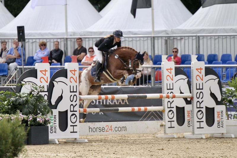 In vendita c'è il pony castrato di 6 anni Zippo de Luxe (Nilantshoeves Zippo x Fürst Nymphenburg) con un'altezza di 1,48 m. Zippo ha un'ottima galoppata ampia e un'andatura di salto uniforme e potente, con molta qualità e potenziale. Ha vinto sia nel salto ostacoli A** contro cavalli di grande taglia, sia nel salto pony L (8,3 nella qualificazione per il Bundeschampionat dei pony di 6 anni). Al Bundeschampionat ha ottenuto un ottimo terzo posto nella prova di ingresso con un punteggio di 8,3. Inoltre, ha dimostrato il suo coraggio anche nelle prove di cross-country, mostrando di affrontare questi compiti con facilità e gioia. Nel maneggio è estremamente gentile, ama i bambini ed è assolutamente affidabile. Zippo è abituato a essere montato da bambini, non mostra alcun comportamento scorretto come saltare o scalciare ed è tranquillo nel bosco. Zippo è adatto sia per il pony sportivo di alto livello che per i principianti nel salto. Un pony sportivo con molto talento e un carattere dolce – la combinazione perfetta per cavalieri ambiziosi.