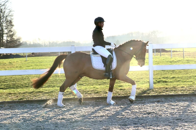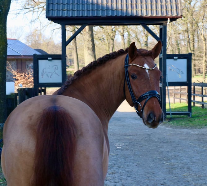 | Advertisement | | DR | Gelding | Chestnut | Born 2020 | 14.1 hh | Sire: Quarterback’ Junior x Centauro’s Golden Flashlight "Quality" is a very elegant, well-presented gelding who impresses not only with his appearance but also with three very good basic gaits and excellent rideability. He is light in the contact and very comfortable to ride. In handling, he is very well-behaved and affectionate. His rideability and work ethic have already been demonstrated at the age of five during his competition outings. He has achieved several placings and a victory in an A-Dressage test, and has already placed in a class L dressage competition. "Quality" is already very confident and well-trained, so with further development, he can be used in FEI competitions in the near future. https://youtu.be/9BD8ptzV4GI?is=Dp5NlcF8v6_Ljh7m For serious inquiries, please feel free to contact us by phone at +49 170 7941333.