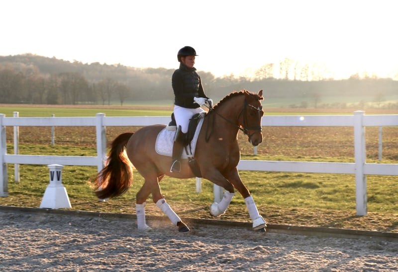 | Werbung | | DR | Wallach | Fuchs | *2020 | 148 cm | v. Quarterback’ Junior x Centauro’s Golden Flashlight „Quality“ ist ein sehr schick aufgemachter Wallach, der neben seiner Optik mit drei sehr guten Grundgangarten und einer tollen Rittigkeit überzeugen kann. Der Wallach ist leicht in der Anlehnung und sehr sitzbequem. Im Umgang ist er sehr brav und verschmust. Seine Rittigkeit und Arbeitseinstellung konnte „Quality“ bereits 5-jährig bei seinen Turnierstarts unter Beweis stellen. So konnte er sich neben einigen Platzierungen und einem Sieg in einer A-Dressur bereits in einer Dressurprüfung der Klasse L platzieren. „Quality“ ist bereits sehr sicher und weit ausgebildet, so dass er bei weiterer Förderung zeitnah in FEI-Prüfungen eingesetzt werden kann. https://youtu.be/9BD8ptzV4GI?is=Dp5NlcF8v6_Ljh7m Bei ernsthaftem Interesse melden Sie sich gerne telefonisch unter der +491707941333.