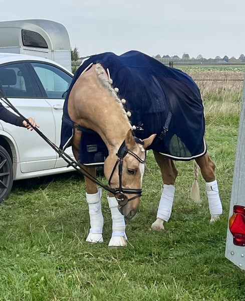 "Special Guest" is an exceptionally charming and stunning German Riding Pony, primarily suited for dressage and leisure riding. With his expressive, ground-covering gaits and natural movement quality (barefoot), he offers excellent potential for further development in dressage. His most notable trait is his pleasant rideability: Special Guest is very light in the bridle and always attentive and cooperative under saddle. He works with motivation and clearly enjoys pleasing his rider. Character-wise, he impresses with a clear mind, a gentle temperament, and a sensitive nature. At the same time, he has a big heart and always strives to do his best for his rider. This makes him not only suitable for further dressage training but also an excellent, reliable leisure partner. He is familiar with lunging, small jumps, and relaxed trail rides in the countryside with his horse companion. Whether for an ambitious young rider or a harmonious mother-daughter duo – Special Guest is a pony that aims to bring joy and will stand by his human partner through thick and thin. He will only be placed in caring, loving hands where his potential can be further nurtured and his fine character appreciated. For serious inquiries, we look forward to receiving a message, phone call, and the opportunity for a personal introduction.