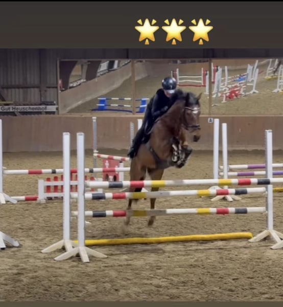**Verkaufsanzeige: Deutsches Reitpony Wallach** Zum Verkauf steht ein wunderschöner Deutsches Reitpony Wallach, geboren im Jahr 2019. Mit seinem eleganten braunen Fell und einem Stockmaß von 153 cm ist er der ideale Partner für ambitionierte Freizeit oder Turnier Reiter. 2 Jährig gekört - daher top Röntgenbilder und Tüv 5 Jährig Dressurpferde A und Dressurpferde L platziert Sowie mit einer Jugendlichen L* platziert. Mit meiner 13 j Tochter dieses Jahr das gr Reitabzeichen gemacht RA4 Er springt sicher einen A Parkour und rettet auch Kinder wenn sie nicht richtig den Sprung nehmen. Er springt immer, und gleicht die Fehler der Kinder aus. Einzelne Sprünge auch L Höhe. Er ist beim springen auch sehr entspannt, eignet sich als Hunter. Er kann Galopp Wechsel und Traversalen. Er geht sehr gerne ins Gelände. Er kennt Spazieren, longieren, ausreiten, springen und ist beim verladen und Turnier ausladen sehr artig und händelbar. Meine Tochter wird leider zu groß für Ihn. Sie ist schon 174 cm. Daher steigen wir leider aufs Grosspferd um. Dieser talentierte Wallach eignet sich hervorragend für die Dressur er hat einen sehr sehr guten Schritt und einen sehr bequemen tollen Galopp, Lieblings Disziplin Trapp Verstärkung. Er ist sowohl leichtrittig als auch gutmütig und eignet sich somit für Reiter aller Erfahrungsstufen. Er ist gut sozialisiert, brav im Umgang und zeigt sich stets lernwillig. Ob für den Freizeit- oder Turniersport – mit diesem Pferd haben Sie einen treuen Begleiter an Ihrer Seite. Bei Interesse oder weiteren Fragen stehe ich Ihnen gerne zur Verfügung. Besuchen Sie uns und überzeugen Sie sich selbst von diesem tollen Pferd!