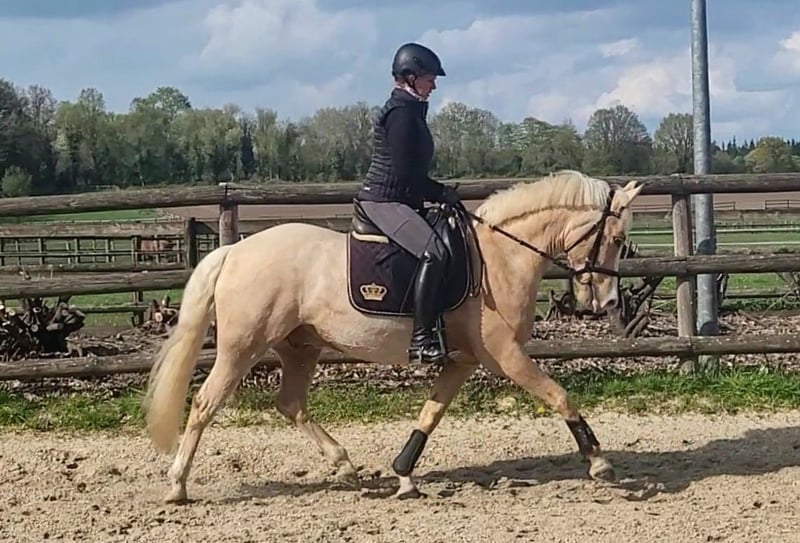 Verkaufe deutschen Reitpony-Wallach, geb. 2019, in wunderschönem Palomino-Farben. Mit einem Stockmaß von 148 cm ist er perfekt für ambitionierte Reiter, die ein vielseitiges und gut gerittenes Pony suchen. Er ist kein reines Anfängerpony und braucht einen erfahrenen und ruhigen Reiter. Grundsätzlich auch schon für gut reitenen Kinder geeignet da er bei uns auch schon vom Kind mitgeritten wird. Er kennt Dressur und Stangenarbeit sowie Gelände. Im Umgang brav und unkompliziert. Kennt Boxenhaltung und Offenstall. Ein kurzes Video kann per WhatsApp geschickt werden. Bei Interesse freuen wir uns auf Ihre Kontaktaufnahme!
