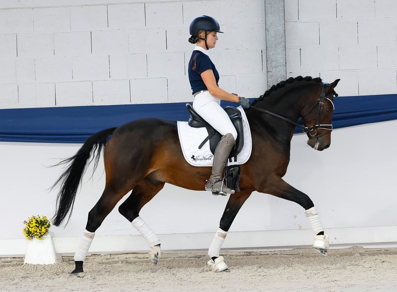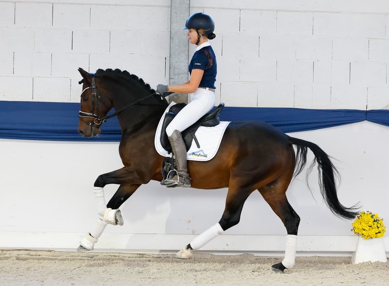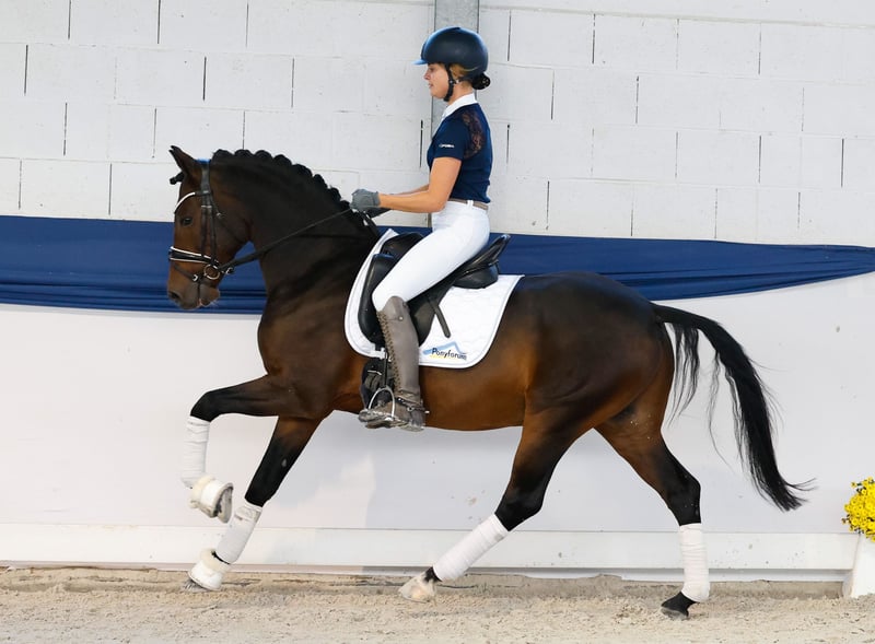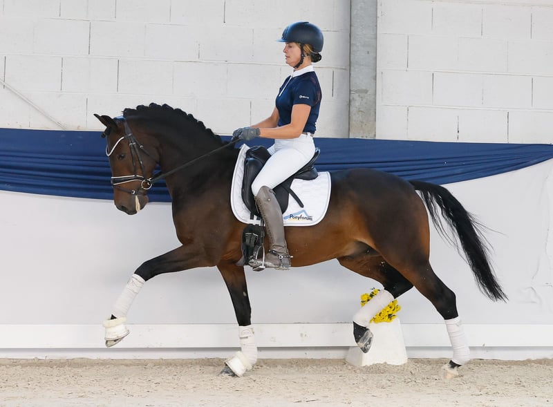 Dans notre collection, vous trouverez une sélection rigoureuse de poneys de dressage adaptés à toutes les exigences : poneys d’éducation, de reproduction et pour enfants. Voici le lien vers la collection complète : https://ponyforum.auction Champion régional de Westphalie, finaliste du championnat fédéral, placé en FEI Pony, classé en épreuves de dressage jusqu’à la catégorie L**, victorieux et placé en épreuves de dressage pour jeunes chevaux de niveau L et A, ainsi qu’en épreuves pour chevaux de sport. Un poney FEI prêt à partir en compétition ! Le magnifique Downtown Abbey possède un palmarès complet avec la Fédération Nationale. Il a remporté le championnat régional, participé trois fois au championnat fédéral, été finaliste et a réussi dans toutes les disciplines de concours pour jeunes chevaux. Actuellement, lors de sa première saison FEI, il affiche déjà des scores allant jusqu’à 69 % ! Sa galopade et son pas sont d’une qualité exceptionnelle. Il est parfaitement à l’aise avec les exercices de base et répond immédiatement aux aides du cavalier. Les grands concours, y compris les nuitées et le transport, ne lui posent aucun problème : ce cheval calme et équilibré s’adapte rapidement à son environnement et s’acclimate sans difficulté. Son frère cadet, Dancing in the Moonlight AT, est l’un des poneys de dressage pour jeunes chevaux les plus performants de sa génération, ayant déjà remporté des épreuves de niveau M. Un signe clair de la génétique solide de ces poneys de dressage performants ! Downtown Abbey possède le Certificat de Mesure à Vie.