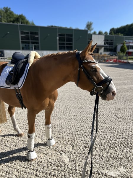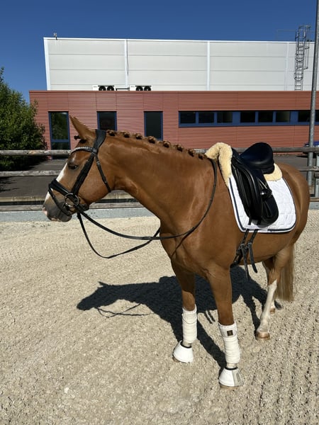 I am leasing/selling a beautiful 8-year-old German Riding Pony gelding by The Breas my Mobility x Rubin Royal. He has been in my possession since he was a foal and is currently in training towards L-level dressage. Movie is a very friendly and willing pony with three equally good basic gaits. He goes out alone and in a group calmly. A good home is very important to me. Therefore, I would like to lease him initially to see if it fits from both sides and if he feels comfortable in his new home. If everything works out, I can imagine a sale. Since Movie is very sensitive and fine to ride, I wish for him to have a rider at A/L level. As Movie is 1.47m tall, the rider should also not be taller than 1.72m (he covers very well) and weigh no more than 65kg. Plenty of turnout is very important to me, and I am only looking for a long-term home for him. I would be happy to send a video upon request. Relocation is possible within a radius of 150km around 57368. I will only respond to inquiries with full names and a description of the stable as well as the riding abilities.