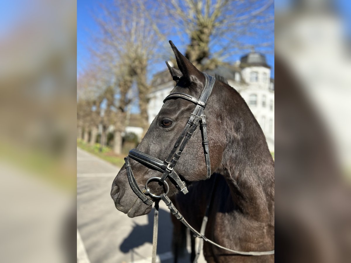 Dieser bildhübsche Rappe vom Besten G x Chardonnay (04/2018, ca.1,50m) begeistert mit seiner tollen Präsenz, drei guten Grundgangarten und Leichtigkeit im Umgang. Aktuell befindet er sich auf solidem L-Niveau und zeigt sich dabei stets lernwillig. Auch auf dem Turnier konnte er bereits Erfahrungen sammeln. Gelände kennt er ebenfalls. Aktuell ist er viermal beschlagen und von wird unserer 15jährigen Tochter geritten. Mit ihm kann man einen neuen Partner fürs reiten und für sein Herz gewinnen.