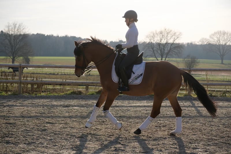 XXL-Pony Wallach – Perfekt für kleine Erwachsene oder ambitionierte Jugendliche – Top-Abstammung – inkl. AKU mit Rückenröntgen Zum Verkauf steht ein 8-jähriger XXL-Pony Wallach, geboren am 10.06.2018, mit einem Stockmaß von 1,53 m. Er ist ein sportlicher, vielseitiger Partner für ambitionierte Reiter, die kein Anfängerpferd suchen, sondern ein Pony mit Go und Entwicklungspotenzial. Abstammung: FS Don’t Worry x FS Champion de Luxe Ausbildungsstand: - Dressur auf solidem L-Niveau - springt ebenfalls motiviert und mit Übersicht - Dressurpferde A platziert - vielseitig einsetzbar (Freizeit, Dressur, Springen, Gelände) Charakter: Kein Anfängerpferd – sehr gut geeignet für kleine Erwachsene oder sehr gut reitende Jugendliche mit feiner Hand und entsprechender Erfahrung. Bei passender Förderung zeigt er viel Potenzial und Arbeitsbereitschaft. Besonderheiten: - XXL-Pony (1,53 m) - sehr gut für kleine Erwachsene geeignet - Braunfalbe - 3-jährig als Hengst gekört - seit 5-jährig Wallach - tagsüber in gemischter Gruppe, nachts in Box; kennt im Sommer auch 24/7 Weidehaltung - problemlos auch mit Stuten - Alternative zum Großpferd - brav im Umgang - verlade- und schmiedefromm - motiviert und arbeitswillig - geht barhuf - vollständig geimpft inkl. Herpes - regelmäßig entwurmt - AKU aus 2023 inkl. Röntgen von Beinen und Rücken vorhanden Preis: 19.500 € VB Standort: 30900 Wedemark Probereiten kurzfristig möglich. Platz vor Preis.