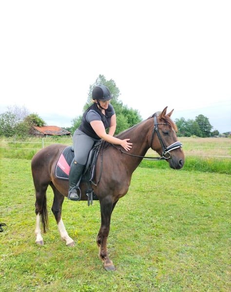 Schweren Herzens suche ich für meinen 8-jährigen Deutschen Reitpony Wallach (1,54 m) ein neues Zuhause, in dem er weiter gefördert und geliebt wird. Charmeur- Der Name ist Programm! Er ist ein absolut menschenbezogenes Pony, der die Nähe zu „seinem“ Menschen genießt und mit viel Motivation und Freude bei der Arbeit ist. Ob Dressur, Bodenarbeit, Equikinetic oder Dualaktivierung – er möchte gefallen und bringt eine tolle Arbeitsbereitschaft mit. Sein Charakter ist etwas ganz Besonderes: kopfklar, neugierig, gelassen und dabei immer freundlich. Auch im Umgang zeigt er sich unkompliziert – brav beim Schmied, kennt Hunde und geht problemlos auf den Anhänger, auch alleine! Im Gelände ist er sowohl alleine als auch in der Gruppe unterwegs und bleibt auch in neuen Situationen gut händelbar. Er reißt sich nicht los, sondern orientiert sich am Menschen. Trotz seiner lieben Art ist er kein Anfängerpony, da er aufgrund seines Alters und Ausbildungsstandes noch weiter gefördert werden möchte. Er ist „unverbraucht“ und bringt viel Potenzial für die Zukunft mit. Er lebt aktuell im Offenstall in einer gemischten Herde und ist dort rangniedrig. Dies ist kein Notverkauf – er wird nur in allerbeste, passende Hände abgegeben. Vorkontrolle sowie Vorkaufsrecht sind für mich selbstverständlich. Vorab kannst du auch erst eine Reitbeteiligung mit Kaufoption bei uns machen, um zu schauen ob es wirklich passt Er kann auch am jetzigen Stall stehen bleiben Ins neue Zuhause kann er auch gebracht werden Ich möchte nicht das er ein Wanderpokal wird,das hat er nicht verdient! Wenn du auf der Suche nach einem ehrlichen Partner bist, mit dem du gemeinsam wachsen kannst, könnte er genau der Richtige für dich sein. ❤️ Er hat einen leichten Bockhuf, dadurch hat er keine Einschränkung, braucht keine Eisen und läuft Barhuf Der Preis ist verhandelbar, Zubehör bringt er mit