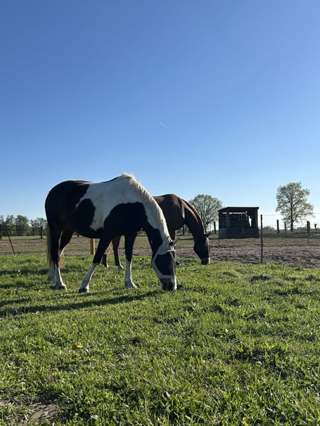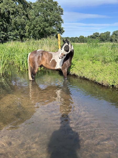 Verkauft wird hier unser Pony/ Kleinpferd „Hubert“. Geboren im Jahre 2018 wurde Hubert im Alter von 5 Jahren schonend angeritten. Hierfür stand er ganze 3 Monate im Profiberitt. Da er sich als sehr charakterstark zeigt und er auch sehr gern mal testet ist er definitiv kein Anfänger- und Kinderpony. Er braucht erfahrende Hände und eine klare Führung. Außerdem zwickt er auch gern mal, eine echte kleine Herausforderung also. Unterm Sattel ist er eher von der faulen Sorte. Braucht hier jedoch noch wesentlich mehr Ausbildung. Das ist auch der Punkt, warum wir uns für einen Verkauf entschieden haben. Ich werde ihm reiterlich nicht gerecht, weshalb er auch im Dezember 25 das letzte Mal (von meiner Trainerin) geritten wurde. Auch davor hatte er einige Wochen „Reitpause“ und konnte trotzdem problemlos aufgesattelt und ein paar Runden geritten werden. Von einem Proberitt sehen wir jedoch aufgrund der langen Stehzeit ab. Ich selbst arbeite nun 4-5 Tage die Woche am Boden mit ihm. Hier zeigt er sich zwar charakterstark, aber interessiert und schrecklos. Er kann natürlich gern am Boden Probe-gearbeitet werden. Er ist absolut verladefromm und steht artig beim Schmied. Der Tierarzt ist leider nicht sein bester Freund, kommt aber trotzdem in regelmäßigen Abständen zum impfen (Influenza, Tetanus & Herpes). Im letzten Sommer wurden auch seine Zähne frisch bearbeitet. Krank oder lahm war Hubert bisher noch nie.