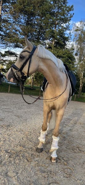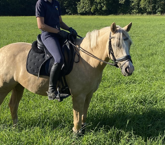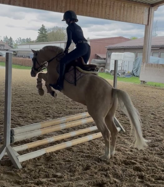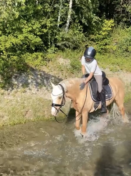 With a heavy heart, we are looking for a new home for our 8-year-old pony gelding. We purchased Touchi directly from the breeder at the age of 4. He is licensed and qualified for the Federal Championship at age 5. Due to his absolutely gentle nature and calm demeanor, we can easily see him as a children's pony. However, he would also make a loyal companion for a small adult. He is completely well-behaved and reliable both in riding and handling. Whether riding alone or in a group, galloping across fields, riding through water, riding bareback, or just with a halter, he is up for any fun! He also enjoys small jumps. He is used to daily turnout with social contact and gets along very well with other horses. The health certificate from 2021 is available and shows no findings. Unfortunately, we lack the time he deserves, which is why we wish for him to find a wonderful new home. For more information, please contact us by phone at 0172/8269899.