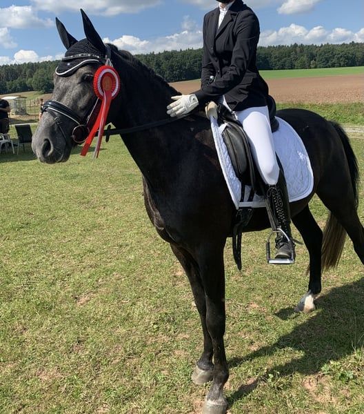 Schweren Herzens steht mein geliebtes 9-jähriges Deutsches Reitpony First Class Dance For Me zum Verkauf, da ich es zeitlich leider nicht mehr schaffe, ihm die Förderung und Aufmerksamkeit zu geben, die er verdient. „Danny" wurde als junges Pony erfolgreich von mir in Reitpferdeprüfungen vorgestellt und konnte sich dort gegen Großpferde platzieren. In den darauffolgenden Jahren wurde er erfolgreich in Dressurprüfungen der Klasse A vorgestellt und platziert. Er verfügt über drei sehr gute Grundgangarten und ist mit einem tollen Go ausgestattet. Einige L-Lektionen beherrscht Danny bereits, sodass er seinem neuen Reiter in Zukunft sicher viel Freude in der Dressur bereiten wird. Im Umgang zeigt er sich stets lieb und unkompliziert und ist schmiede- und verladefromm. Aufgrund seines Temperaments und seines Go’s wird Danny nicht als Anfänger- oder reines Kinderpony verkauft. Ich wünsche mir für Danny nur das beste Zuhause mit einer Person oder Familie, die ihn fördert, weiter ausbildet und liebt. Bei weiteren Fragen melden Sie sich gerne unter: +49 162 9646567