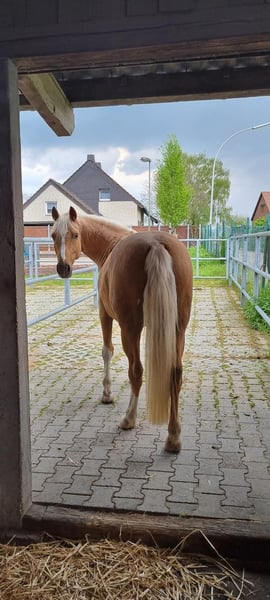 Brave Palomino Riding Pony Gelding with a Big Heart – Reliable in Daily Life, Suitable for Riding & Driving For sale is a characterful German Riding Pony gelding in the beautiful Palomino color, who impresses with his temperament, versatility, and calm demeanor. Standing approximately 146 cm at the withers, he is an ideal partner for families, ambitious youth, and for leisure or driving sports. He has been solidly trained in dressage and reliably driven in harness. In handling, he consistently shows himself to be friendly, steady-nerved, and cooperative. Whether on the riding arena, in the countryside, or in traffic in front of a carriage – this pony provides his handler with safety and joy. Thanks to his lineage from A Gorgeous – Werwolf/Vento – he also has a sport-oriented foundation. With proper training, he is well-suited for ambitious young riders or entry into competitions or stronger driving disciplines, without losing his pleasant character. Brief profile: * German Riding Pony gelding * 8 years old, approx. 14.1 hh * Palomino * Trained in dressage for riding & driving * Very well-behaved, reliable, and people-oriented * Steady-nerved – suitable for families * Suitable for leisure, ambitious youth, and driving sports Health: A 2023 X-ray pre-purchase exam is available and can be viewed upon serious interest. A pony that simply brings joy in everyday life and proves to be a reliable family partner as well as an ambitious leisure or driving companion. Viewing available by appointment at any time. Further information, photos, and videos gladly provided upon request.
