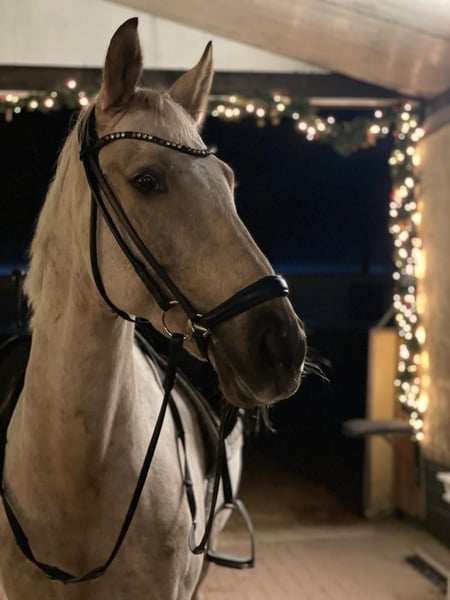 If everything fits, we would choose to place our pony Goldbär in a new 5-star home. Goldbär is a 9-year-old German Riding Pony gelding by FS Coconut Dream out of FS Don’t Worry. He is a reliable partner for children and also brings joy to a slender adult rider. He has an interesting palomino coat and a calm, faultless temperament. He competes in dressage and is capable of performing all movements up to level L. Equally, he can be ridden in lunges by beginners. He is never spooky, fearful, or mean. He always gives his best and stays in good spirits. We have owned him since he was 3 years old; he has always been healthy, with no illnesses or lameness. My daughter has mostly ridden him alone from lead-rein classes up to A-level dressage, and at home, he also performs L-level exercises. He enjoys hacking, is farrier-friendly, loads easily, and is experienced in competitions. He gets along well with other horses but can also be kept alone. He is familiar with the driving harness and enjoys being on pasture. He has also been kept in open stable management. For my daughter, competitive ambition was not always the top priority, so his dressage talent has not yet been fully developed. His maternal half-brother is the European Championship medalist FS Capelli de Niro. Selling is not a necessity; we only want the best possible home for him – because he deserves nothing less. Otherwise, he remains our mascot and will either go into early retirement or be kept in our stable as a companion.