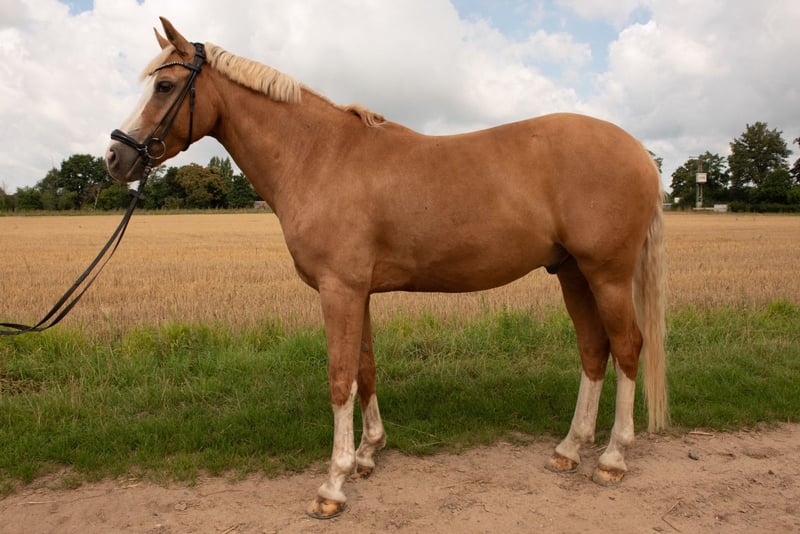 For sale is our charming riding pony gelding. Marlo was born in 2017 and impresses with his friendly nature and elegant appearance. With a height at the withers of 14.8 hands, he is perfect for ambitious riders who value dressage skills. His balanced temperament makes him well-suited for children, but he also comfortably accommodates small adult riders. He is suitable for both experienced riders and aspiring young riders seeking a reliable and eager partner for training. The palomino gelding impresses with his noble appearance and versatile potential in dressage training. He is well-trained and shows promising prospects for further development. The pony is healthy, regularly vaccinated and dewormed. If you are interested or would like more information, we look forward to hearing from you.