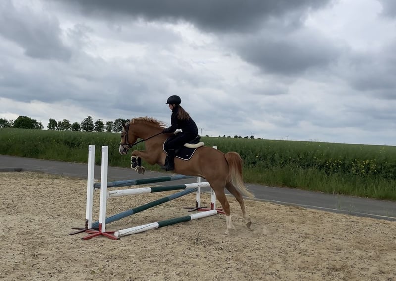 Tennessee ("Tenny") Deutsches Reitpony Endmaß 148 cm Fuchs, 4 weiße Beine 8 Jahre Abstammung: Springbetont gezogen Seine Besitzerin über Tenny: Unser Wallach wurde von uns schonend im 4.Lebensjahr angeritten und ist uns somit ans Herz gewachsen. Er ist ein kluges Pony, der sehr schnell lernt und besonders am Springen Spaß hat und dort seinen Wirkungsbereich sieht. Er war nie krank, hat keinerlei Allergien o.ä. und läuft barhuf (super Hufsubstanz). Beim Ausschneiden ist er stets brav und Hänger fahren kann man mit ihm auch problemlos alleine. Tenny begrüßt uns mit einem freudigen Wiehern, wenn wir kommen. Seine Reiterin über Tenny: Tenny habe ich seit knapp 3 Monaten in Betritt. Er ist sehr lernwillig und leistungsbereit, steht leicht an der Hand und am Schenkel. Er ist in allen Gangarten angenehm und weich zu sitzen und zeigt sich besonders schön im Trab. Sein Takt ist gleichmäßig und er lässt in den Gangarten problemlos zulegen und zurücknehmen, Tritte verlängern etc. Zum Sprung zieht er gut hin und hat sichtlich Spaß dabei. Er springt schon gleichmäßig Gymnastikreihen und macht gute Cavalettiarbeit. Ins Gelände geht er allein oder in der Gruppe. Er ist immer regulierbar und lässt sich alleine von den anderen Pferden wegreiten. Absolut nicht schreckhaft und trittsicher. Außer mir reitet ihn gelegentlich eine fortgeschrittene 14jährige Reiterin und kann die Lektionen, die ich mit ihm erarbeitet habe, gut nachreiten. Auch meine 8jährige Tochter, reiterlich Anfängerin, trägt er auf dem Platz ein paar Runden. Aber hier zeigt sich deutlich, daß ein so junges Kind nicht auf Dauer allein mit ihm klarkommen wird, da es an der Einwirkung und Erfahrung fehlt, um die Leistung abrufen und ausbauen zu können. Seine Stallbetreiberin über Tenny Tenny ist eines der sozialsten und verträglichsten Pferde, die ich je im Stall hatte. Er geht Konflikten aus dem Weg und ist dabei freundlich und aufgeschlossen. Hier stand er bereits mit Hengsten, Stuten sowie Wallachen zusammen. Aktuell lebt er in einer gemischten Ponyherde und hat in unserem Konikwallach einen besten Freund gefunden. Im täglichen Umgang ist er immer problemlos händelbar, lässt sich einwandfrei halftern und führen. Er kann artig warten, egal, ob es Futter gibt oder auf die Koppel geht. Er kann alleine im Stall oder auf der Koppel gelassen werden ohne sich aufzuregen. Was wir uns für seine Zukunft vorstellen: Wir suchen für Tenny einen ambitionierten jungen Reiter/Reiterin, der/die sportlich unterwegs und reiterlich in der Lage ist, das Pony kontinuierlich zu fordern und zu fördern. Mit seiner Größe deckt er Jugendliche und auch Erwachsene zukunftssicher ab - ist aber definitiv kein Gewichtsträger. Ebenfalls verkaufen wir ihn nicht als reines Kinderpony, denn ein jüngeres Kind ist alleine mit ihm überfordert. Alle turniermäßigen verpflichtenden Impfungen sind im roten Pass eingetragen. Es kann also direkt losgehen. Angepasster Vielseitigkeitssattel kann mit erworben werden. Wir wünschen uns einen liebevollen Partner(in), der in ihm kein Sportgerät sieht.