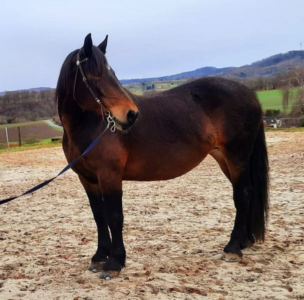 My expressive, always motivated, and very eager to learn Noriker mare Ronja is looking for her perfect human partner. Ronja came to us at 6 months old and lives in a herd in an open stable system. She is shod with Duplo shoes, regularly wormed, and vaccinated. She was backed at the age of 3 and is an attentive, willing, and quite confident riding horse. Ronja is very sensitive in handling and has energetic gaits. She is not suitable for beginner riders and requires a confident rider with clear communication. She prefers her familiar environment and would not be ideal for competitions or frequent changes of scenery. Ronja needs regular work and mental stimulation, which I am unfortunately no longer able to provide. She enjoys working in the arena and riding out alone or with other horses. Feel free to contact me via WhatsApp, also in the early evening.