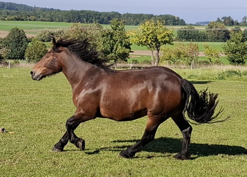spirited Noriker mare for sale Registered 7.64 / 2a in the main studbook. She has already produced beautiful foals. Due to personal circumstances, we are offering her for sale as we unfortunately cannot establish a connection.