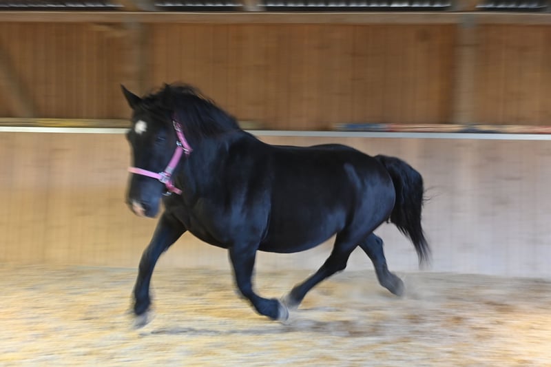 Miriam to 156-centymetrowa, przyjazna i dobrze wychowana czarna klacz rasy noriker. Jej temperament jest zrównoważony, a ona jest wolna od niegrzeczności. Urodziła się 04.03.2013 i była ujeżdżana i zajeżdżana w parach. Miriam jest zarejestrowana w księdze stadnej jako matka ogiera z 7,64 punktami i ma kilka źrebiąt. Meli, jej źrebię z 2023 roku, można obejrzeć na naszym podwórku. Miriam zna zarówno boksy, jak i otwartą stajnię. Jest przyzwyczajona do dzieci, psów, kotów i maszyn rolniczych. Dobrze zachowuje się u kowala, ma bose kopyta i bez wahania wsiada do przyczepy dla koni. Miriam jest regularnie odrobaczana i wolna od PSSM1. Jej ojcem jest ogier Schneider Vulkan 1b. MV: Pongau Elmar XIV