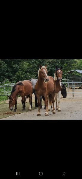 Baileys ist eine bezauberndes 2,5 Jahre alte Noriker Kuhscheck Stute, die ca. 160-163cm gross werden wird . Sie ist am 11.04.2023 geboren und darf artgerecht in einer schönen Noriker Herde Leben und erfahrungen sammeln. Baileys ist sehr interessant für die Zucht wie auch als Freizeitpferd. Sie ist freundlich und aufgeschlossen, sie beherscht das Jungpferde ABC, Baileys kennt zudem Hofmaschienen, Rinder, Hühner, Alpakas, Kleintiere, tobende Kinder, Autos und Hänger fahren. Baileys ist regelmässig entwurmt, geimpft, hat volles Zap Papier mit einer guten Abstammung. V: Eisenhut Nero MV: Tomi Vulka