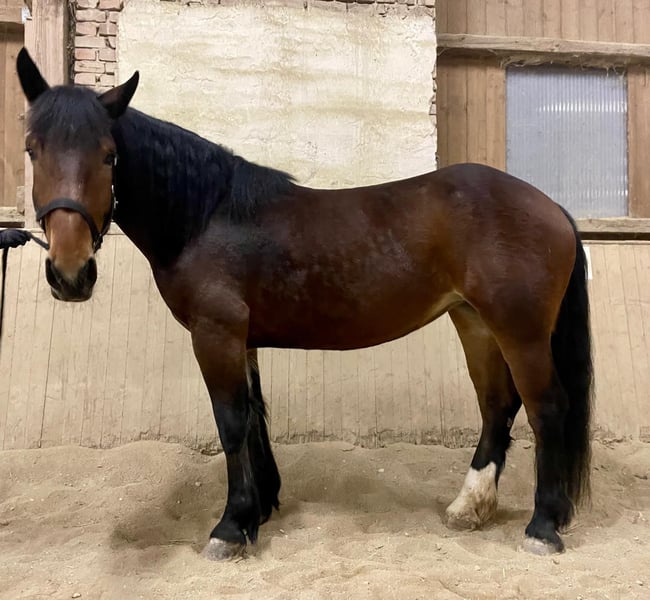 Zum Verkauf steht eine schöne braune Noriker Stute. Mala ist 2022 geboren und hat ein Stockmaß von ca. 1,63 m. Die Stute verfügt über ein korrektes Fundament und überzeugt durch bewegungsstarke Gänge. Mala ist bereits an Reitergewicht gewöhnt und zeigt sich dabei aufmerksam und lernbereit. Zudem ist sie ein- und zweispännig gefahren, wodurch sie vielseitig einsetzbar ist. Aufgrund ihres Alters und Ausbildungsstandes wünsche ich mir für sie einen erfahrenen, Menschen, der sie weiter fördert und ihr Grenzen aufzeigt. In den richtigen Händen hat sie großes Potenzial, sich zu einem zuverlässigen Freizeit- oder Fahrpferd zu entwickeln und ist sicherlich aufgrund ihres Papieres auch als Zuchstute geeignet. Bei Interesse jederzeit melden.