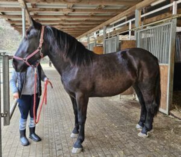 Just Magic è una bella e amichevole cavalla nera Noriker. È nata il 27.04.2022. Padroneggia molto bene l'ABC del cavallo giovane. È abituata ai macchinari del cortile e ai soliti rumori di un cortile con un maneggio, dove ci sono anche cani e gatti che girano. Sa anche andare fuori strada come cavallo a mano. Magic ha una buona andatura e in generale attira l'attenzione. Penso che sarà alta circa 161-164 cm. È interessante per lo sport, il tempo libero e la riproduzione. È regolarmente sverminata, esente da PSSM1 e chippata. Magic ha la carta Zap completa. Sire: Mirnock Diamant MV: Firon Elmar