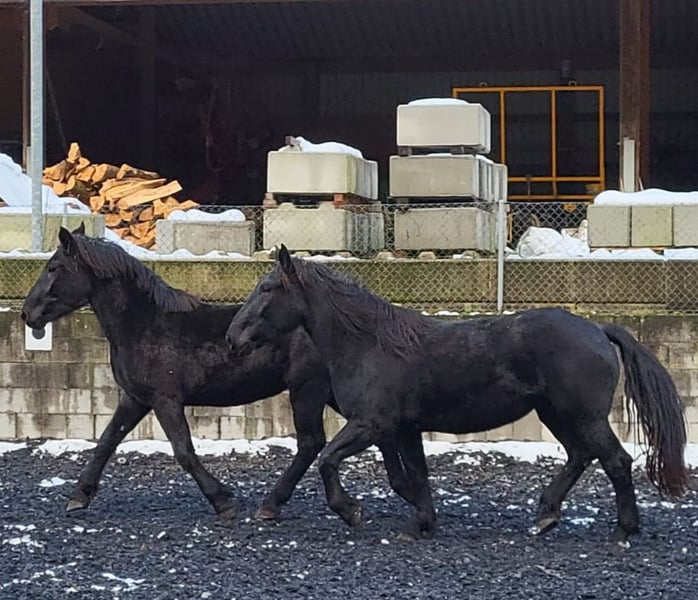 Just Magic is a beautiful and friendly Noriker black mare. She was born on 27.04.2022. She masters the young horse ABC very well. She is used to yard machinery and the usual rumbling on a yard with a riding school, we also have dogs and cats running around. She also knows how to go off-road as a hand horse. Magic has a good gait and is generally an eye-catcher. I think she will be about 161-164cm tall. She is interesting for sport, leisure as well as for breeding. She is regularly wormed, PSSM1 free and chipped. Magic has full Zap paper. Sire: Mirnock Diamant MV: Firon Elmar