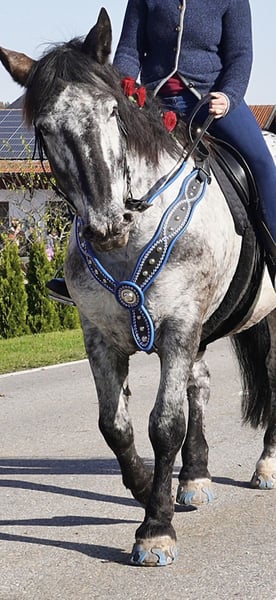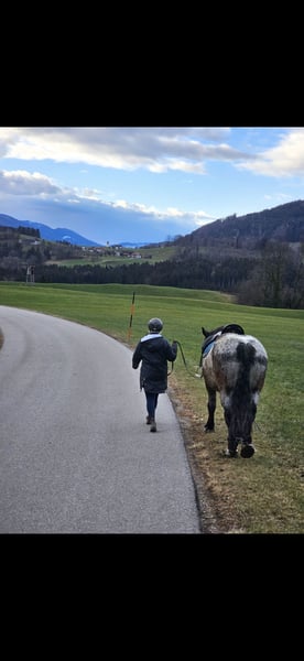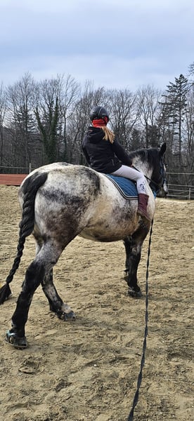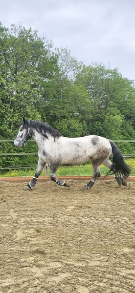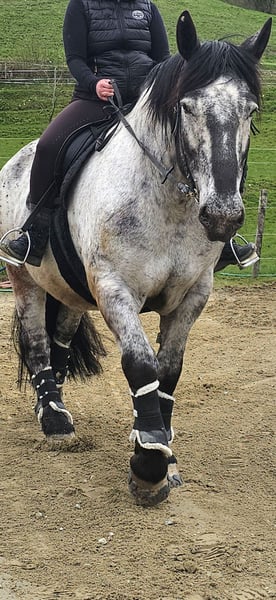Heart horse looking for a new home! *Skadi, 9 years old, Noriker, mare, branded and with full papers.* Height approximately 16.1 hh Shod all around, but also knows hoof boots and can go barefoot, although barefoot is NOT an option. Solid E-level, familiar with children and dogs, and is gentle with them. A reliable trail horse. Good for the farrier and loading, road-safe, accustomed to all farm noises and animals, but she does not like donkeys. Has some experience with first-time hauling. Complete tack is included. (Cold-blooded trail riding saddle fitted for her with a Mattes lambskin girth, 2 saddle pads with foam to prevent slipping, fly bonnet, rain sheet, cooler, bridle with bit and reins, bell boots, grooming supplies, hoof boots, etc.) Regularly vaccinated and dewormed, receives regular physiotherapy. Has already had one foal. Trial rides and test rides are possible. Not a forced sale, no dealers, no riding schools. Skadi is a willing, brave, and sensitive mare that requires loving discipline and riding skills. She is also suitable for beginners and returnees who know how to set clear boundaries. She likes to ask questions, but is not unpleasant or malicious. She simply needs clear direction.