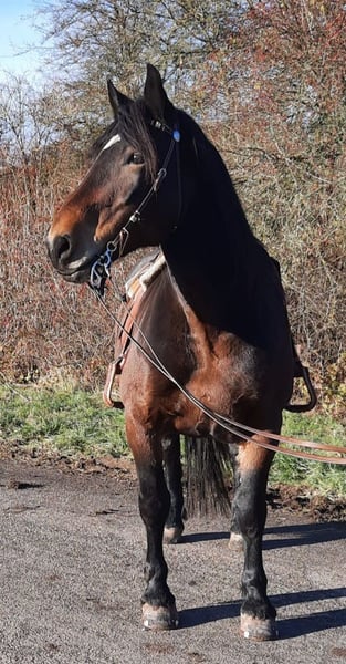 Meine ausdrucksstarke, stets motivierte und sehr lernwillige Norikerstute Ronja sucht ihren passenden Menschen. Ronja ist mit 6 Monaten zu uns gekommen und lebt in Offenstallhaltung mit anderen Pferde. Sie trägt Duplobeschlag, wird regelmäßig entwurmt und geimpft. Ronja wurde mit 3 Jahren angeritten und ist ein aufmerksames, leistungsbereites und recht unerschrockenes Reitpferd. Sie ist sehr feinfühlig im Umgang und hat schwungvolle Gänge. Ronja ist kein Anfängerpferd und benötigt einen sicheren Reiter*in mit klarer Kommunikation. Sie mag ihre gewohnte Umgebung und wäre nicht so gut für Tuniere/häufige Ortswechsel geeignet. Ronja braucht regelmäßige Arbeit und Beschäftigung, die ich ihr leider nicht mehr bieten kann. Sie arbeitet gern auf dem Platz und im Gelände allein oder mit mehreren Pferden. Kontakt auch gerne per WhatsApp und ab dem frühen Abend.