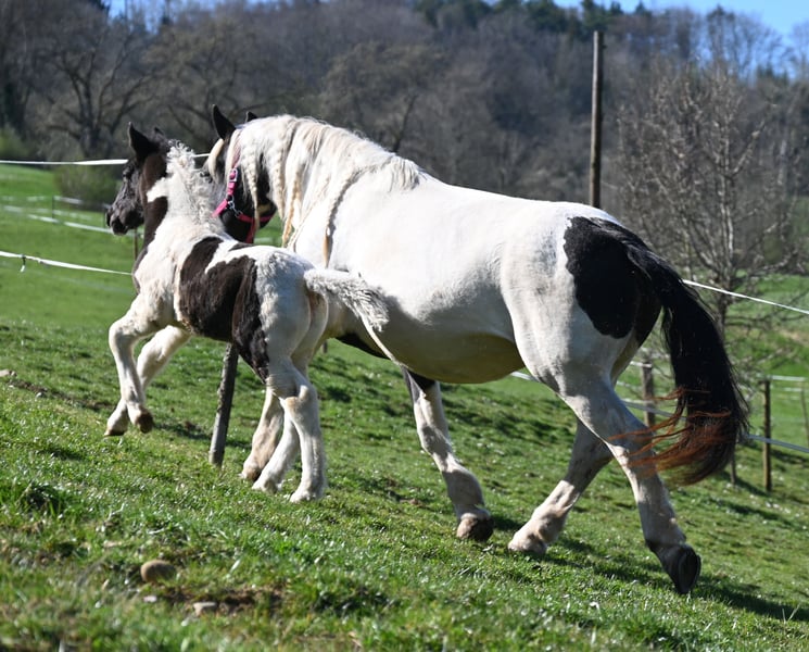 Jasmina est née le 21 mai 2017. Elle mesure environ 1,61 m et possède un caractère très doux et gentil. Elle a également une présence exceptionnelle qui captive tous ceux qui la voient. Elle est très bien montée, aussi bien en extérieur qu’en manège. Elle fréquente notre école d’équitation et peut également être montée par des cavaliers débutants. Elle est courageuse et sûre en trafic. Jasmina a été inscrite dans le stud-book en tant que mère de jument à 7,50, et jusqu’à présent, elle a eu trois poulains, dont deux de couleur pie et un alezan, tous de bonne qualité. Elle est pleine de Hennessy Schaunitz pour le printemps 2026. Jasmina possède un bon encolure, une croupe très bien échancrée, une excellente conformation générale, avec un trot très élégant et ample. Elle est ferrée quatre fois, et cela restera ainsi. Elle a été testée PSSM1 négative, est vaccinée et vermifugée régulièrement. Jasmina monte calmement dans le van et est très calme devant le maréchal-ferrant. V: Firon Elmar MV: Lotto Vulkan