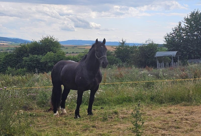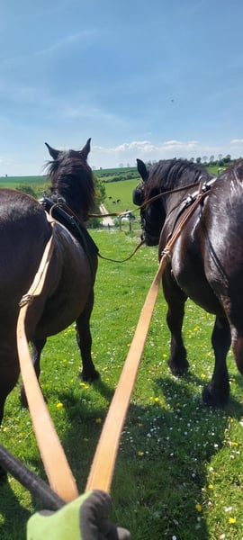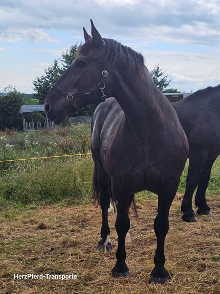 Zum Verkauf stehen zwei wunderschöne Kaltblüter. Nero (auf den Bildern links) ist ein Noriker Wallach. Geboren wurde er 2012 und er ist 1,60/1,65 m groß. Er wurde sowohl im Gespann gefahren als auch geritten. Er ist absolut brav im Umgang und ist auch für einen ambitionierten Reitanfänger geeignet. Pia (auf den Bildern rechts) ist eine Stute und ein süddeutsches Kaltblut. Geboren ist sie 2009 und sie ist ähnlich groß wie Nero. Auch sie ist im Umgang sehr brav. Beide sind verladefromm, schmiedefromm und geimpft. Sie stehen zusammen im Offenstall. Beide wollen am liebsten zusammen einen neuen (erfahrenen) Besitzer finden. Dann würden wir sie zusammen für 9000€ abgeben. Ein einzelner Verkauf wäre jedoch auch möglich. Wir wollten mit den Zwei Feldrundfahrten anbieten und Milch mit einer Kutsche an Privathaushalte ausliefern. Leider ist daraus organisatorisch nichts geworden. Weitere Informationen zu den Tieren am Telefon. Bei Interesse einfach melden. Die beiden können jederzeit besucht, angeschaut und theoretisch abgeholt werden.