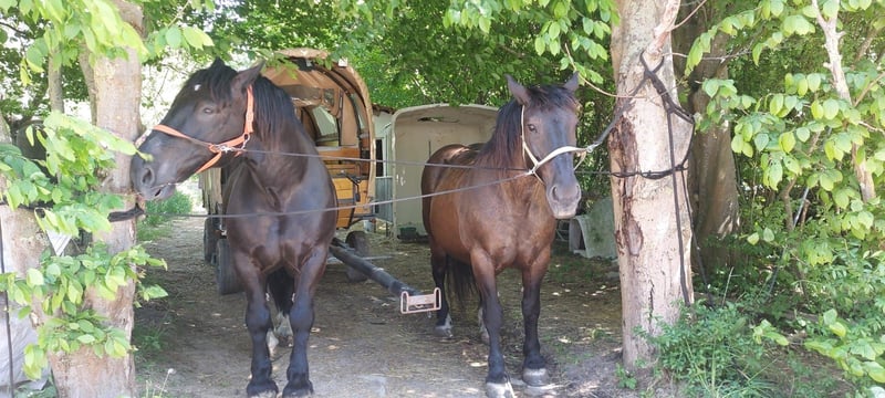 Te koop staan twee prachtige koudbloedpaarden. Nero (op de linker foto) is een Noriker ruin. Hij is geboren in 2012 en is ongeveer 1,60/1,65 m hoog. Hij is zowel in een aanspanning gereden als bereden. Hij is zeer braaf in de omgang en ook geschikt voor een ambitieuze beginnend ruiter. Pia (op de rechter foto) is een merrie en een Zuid-Duitse koudbloed. Geboren in 2009 en ongeveer even groot als Nero. Ook zij is zeer braaf in de omgang. Beide zijn trailer- en hoefsmid-vriendelijk, gevaccineerd en staan samen in een open stal. Ze willen het liefst samen een nieuwe (ervaren) eigenaar vinden. Voor samen zouden we ze voor €9000 aanbieden. Een individuele verkoop is ook mogelijk. We hadden gepland om met de twee rondritten te organiseren en melk met een koets aan particulieren te leveren. Helaas is daar organisatorisch niets van gekomen. Meer informatie over de dieren telefonisch. Bij interesse kunt u ze gerust komen bekijken, bezoeken en eventueel meenemen.