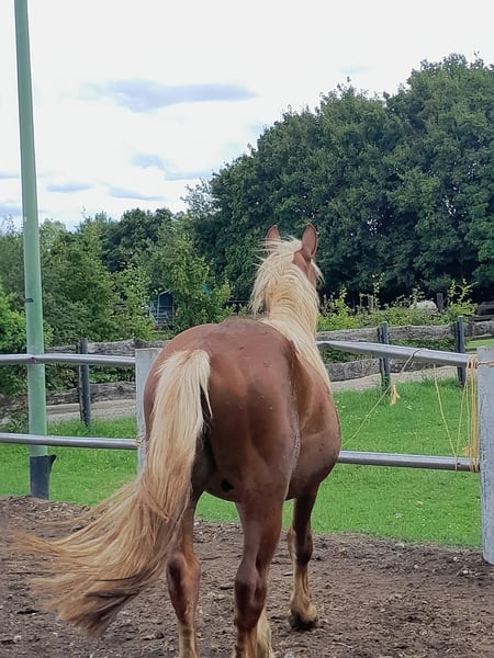We are offering Atos as a foster horse! Atos is a very sweet, cuddly, and friendly Noriker gelding. As seen in the video, he had an engaging upbringing and is well prepared for his future life as a calm leisure riding partner. Getting to know him is of course possible. Please contact us by phone to arrange an appointment.