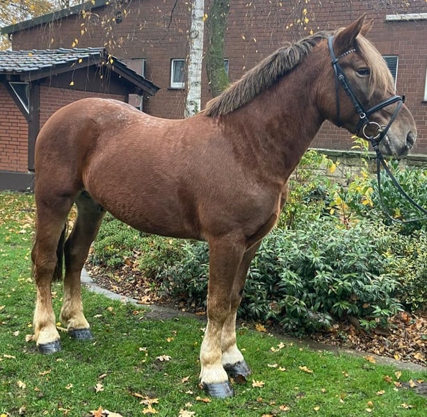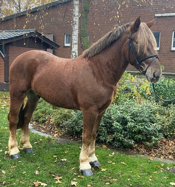 Zum Verkauf steht dieser 4jährige tolle Noriker. Rudi ist freizeitmäßig in allen 3 GGA in Halle und Außenbahn geritten und hat Geländeerfahrung. Ein sitzbequemes Pferd (Gewichtsträger), der auch mit einem dem Menschen zugewandten tollen Wesen zu überzeugen weiss. Lt. Vorbesitzer wurde Rudi auch bereits angespannt. Aufgrund seines ausgeglichenen Charakters wäre er auch für Schul- u. Therapiebetriebe eine gute Option. Bei Interesse und weiteren Fragen zu Rudi rufen Sie mich gerne an (bitte keine WhatsApp; ggf. rufe ich Sie zurück). Tel. 01717718174