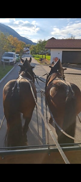 Unfortunately, we have to sell our Noriker harness team due to a reduction in our herd. Bene and Ferdl are four years old, broke to driving, and have been ridden under saddle. Last year, they participated in the Leonhardi Ride without any issues. They are calm but still young horses that enjoy frolicking outdoors. We would be happy if they found a good and caring new home. They are shoe-safe and load well, making them a truly reliable team. Bene's height: 16.1 hh Ferdl's height: 16.3 hh