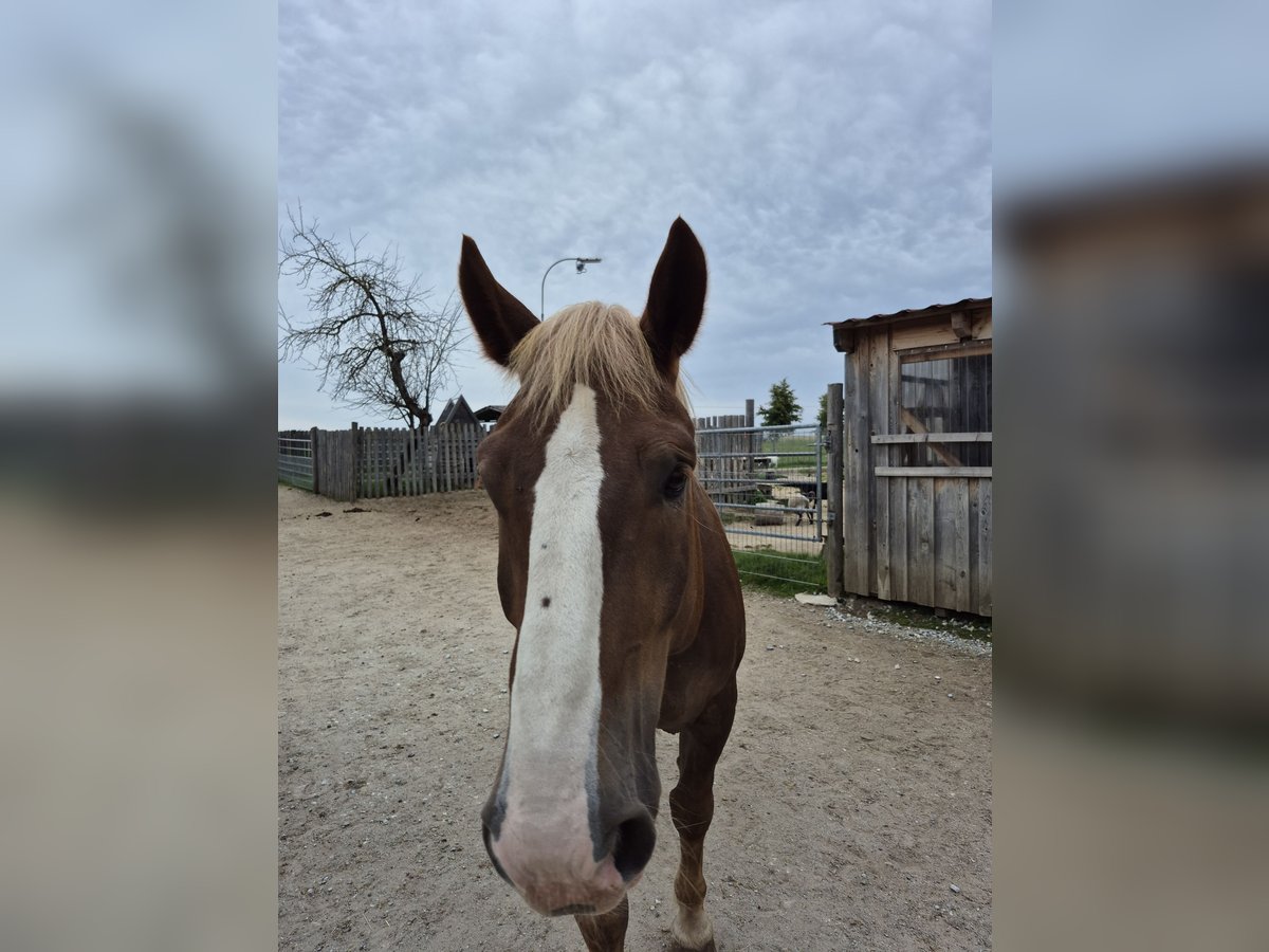 Our Guti is kept in an open stable and has a low social rank. He is familiar with all the other animals on the farm, including chickens, sheep, goats, and pigs. He has been ridden in the terrain, and he knows lunging and groundwork. He has plenty of interaction with children here on the farm. He loves being groomed by them and leads calmly. Gymnastics, playing with a ball—none of these are a problem for him. Guti wants to be involved in everything and learns quickly and obediently. He needs a good home with new challenges to keep him engaged.