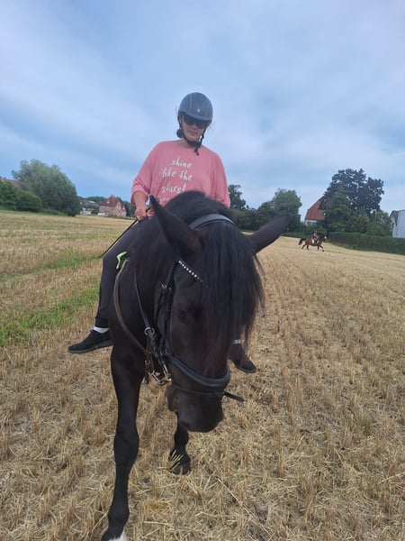 For sale is a 5-year-old black Noriker gelding with an approximate height of 16.1 hh. Pedigree: Sire *Eisenhut Nero*. The gelding is backed and currently being worked in leisure riding. He is familiar with dogs, other animals, children, and road traffic, and generally remains calm and fearless in these situations. He has a relaxed temperament but requires a clear, consistent handler with assertiveness. Without proper guidance, he can become stubborn and somewhat reluctant to work, so regular, meaningful activity is essential. He also needs mental stimulation. He is absolutely compatible with other horses and is used to both box and open stable management. In daily handling, he proves to be reliable: * Shoeing-friendly * Loading-friendly No health issues are known. Due to his temperament, he is particularly suitable for carriage drivers or experienced leisure riders who have prior experience working with young horses. Accessories can be included. The gelding is currently available in Beckum. **Location: Beckum**