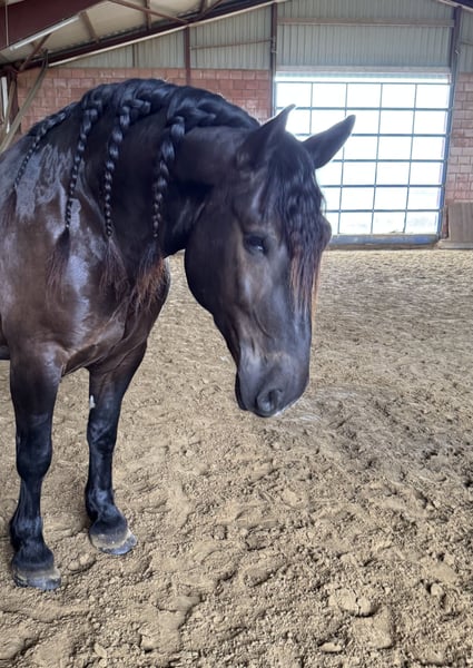Prachtige Norikerhengst zoekt zijn soulmate Te koop staat een indrukwekkende Noriker, bijna 1,65 m hoog, die in maart 6 jaar wordt. Een stevige type met een vriendelijk karakter en een bijzonder persoonlijkheid. Hias is tot nu toe niet bereden. Hierdoor biedt hij de prachtige mogelijkheid om samen met zijn nieuwe eigenaar te groeien. Qua karakter overtuigt hij met een vriendelijke, open, eerlijke en nieuwsgierige aard. Hij houdt van nieuwe uitdagingen, verkent graag zijn omgeving en toont altijd interesse en leergierigheid. Bijzonder is zijn grote behoefte aan nabijheid en binding. Hij zoekt de connectie met “zijn” persoon, geniet van aandacht en wil serieus genomen worden als partner. Wie tijd, geduld en hart investeert, krijgt een trouwe metgezel voor het leven. Hias is ideaal voor iemand die zijn vrijetijdspartner of toekomstige allrounder zelf wil opleiden en waarde hecht aan een hechte band. Hij kent al grondwerk, vrijheidsdressuur en mooie wandelingen, zowel alleen als in groep. Bij serieuze interesse hoor ik graag een berichtje met een korte introductie. ✨