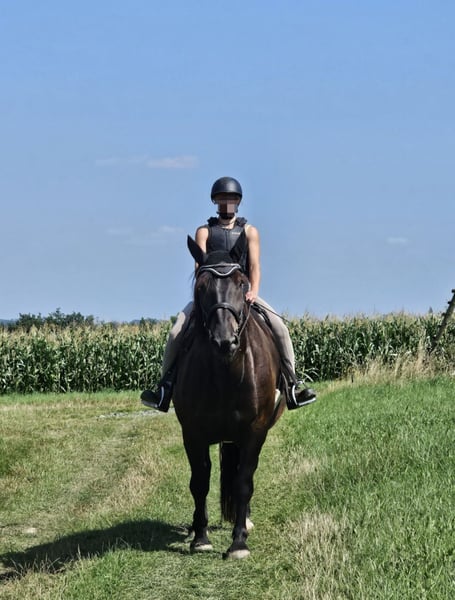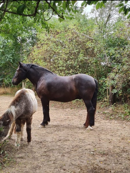 I am selling my heavy-hearted to my Noriker gelding Fabio due to lack of time. He was born in April 2019 and stands 17.2 hands high. Fabio is already backed and has been ridden mainly in the terrain in all three gaits. When properly exercised, he is a willing learner, calm, relaxed, and has a strong personality. He is familiar with ground work based on Horsemanship principles. However, I haven't been able to give him the attention he deserves during the colder months, as I lack an indoor riding arena or riding surface where I could work with him. Therefore, I have decided that our paths must part. Fabio needs a consistent owner who is fair, as he can be quite sensitive. Without clear boundaries and regular work, he tends to test his limits. He is not suitable for beginners. In experienced hands, he has a lot of potential. He would also be very happy in a home where he can be ridden regularly. Currently, he stays in a box at night and is turned out during the day, but he is also accustomed to living in an open stable.