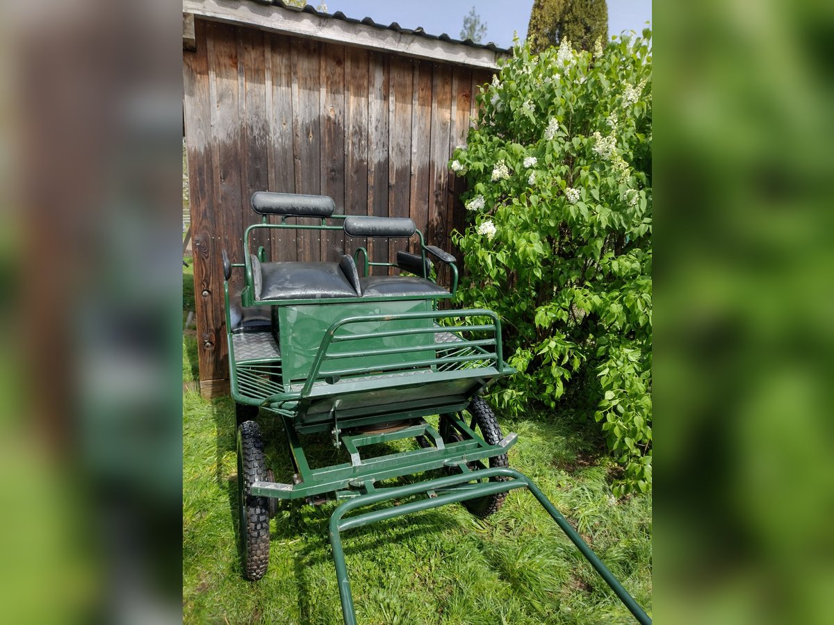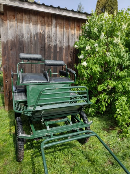 Wegen Umstieg auf Sulky. Schöne, stabile Marathonkutsche, bei Bedarf komplett mit Geschirr zu verkaufen. Gefahren mit 135 cm Pony oder Haflinger. Praktisches Verstaufach unter dem Sitz. Passt in normalen 2er Pferdeanhänger. 900 € VB