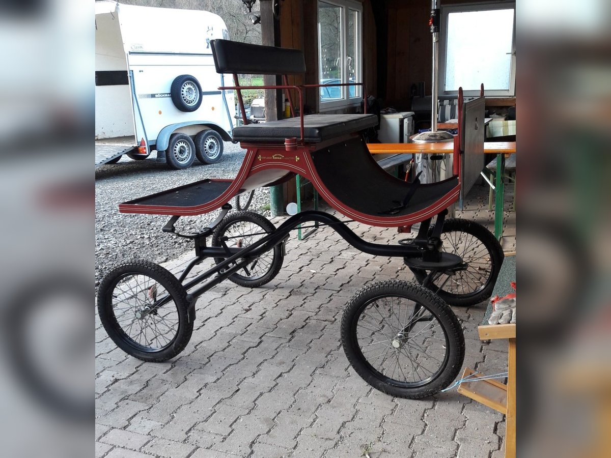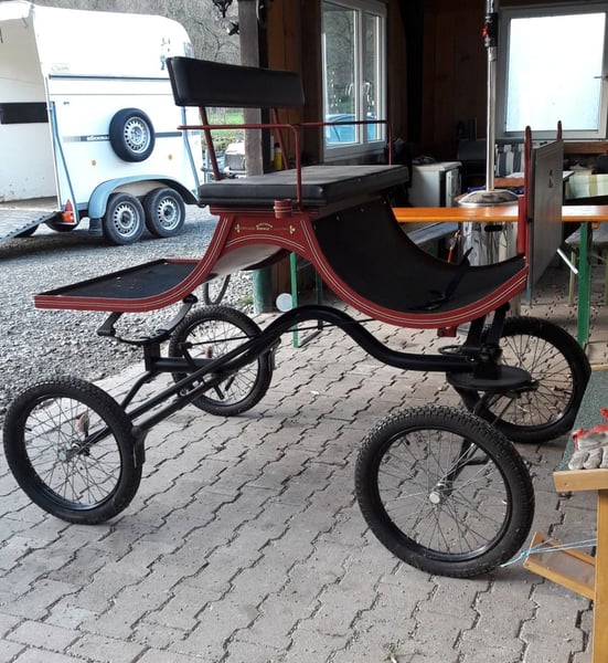 Kühnle Turnier 2 Buggy / Pferdekutsche – für Pferde bis ca. 1,60 m Verkaufe einen Kühnle Turnier 2 Buggy in gutem Zustand. Eine schöne, leichte und wendige Kutsche, ideal für entspannte Fahrten durch Wald und Wiese. Durch das leichte Gewicht eignet sich der Buggy besonders gut für Pferde bis etwa 1,60 m Stockmaß, zum Beispiel Haflinger, Kleinpferde oder Araber. Ich selbst bin die Kutsche mit einer Vollblutaraber-Stute mit einem Stockmaß von 1,56 m gefahren – sie lief damit sehr schön. Technische Daten • Spurbreite: 134 cm • Radgröße: 300–19 • Raddurchmesser: ca. 64 cm • Sitzhöhe vom Boden: ca. 125 cm • Sitzhöhe mit Keil: ca. 140 cm • Gesamtlänge: ca. 210 cm • Breite: ca. 135 cm • Gewicht: ca. 140 kg inkl. Deichsel und Schere Zusätzlich vorhanden Ein Einspänner-Brustblattgeschirr aus Leder ist ebenfalls vorhanden: • Brustblattgeschirr: schwarz • Kopfgestell mit Scheuklappen: schwarz • Fahrleinen: hellbraun Das Geschirr wurde nur sehr wenig genutzt, da mein Pferd leider kurz danach an einer Kolik verstorben ist. Preise Buggy: 950 € Einspänner-Brustblattgeschirr: 390€ Komplettpreis Buggy + Geschirr: VB realer Preisvorschlag Nur Abholung Der Buggy lässt sich gut in einem Zweier-Pferdeanhänger transportieren. Die Schere passt komplett hinein, die Deichsel kann hinten mit einer roten Fahne etwas herausragen. Privatverkauf, daher keine Garantie, Gewährleistung oder Rücknahme.