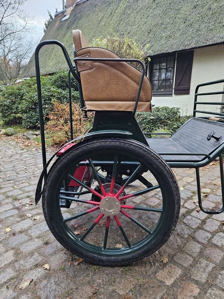 Verkaufe eine Gig, Sondermodell, da die Rückbank nicht durchgehend ist, sondern mit einem verstellbaren Fahrerbocksitz, Höhe 1,30, ausgestattet ist, 29 Zoll Luftreifen, Scheibenbremse, leichtläufig und gut ausbalanciert, für Pferde des Typ Großpferde, Tinker, Noriker, Friesen, kräftige Haflinger gut geeignet, abschließbare Stauräume und Kisten