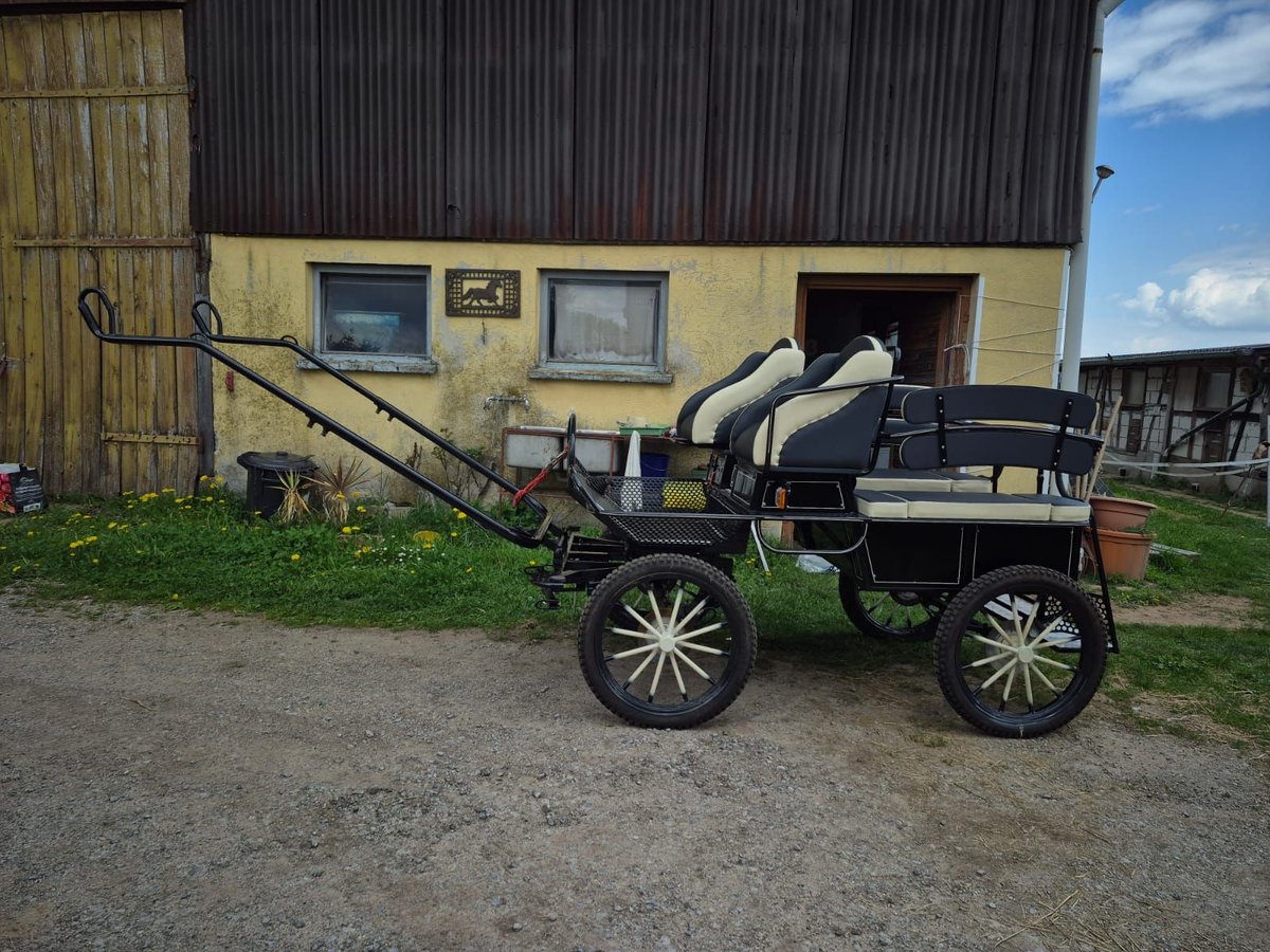 Zu verkaufen ist meine heißgeliebte Marathonkutsche, mein Zugpferd geht in Rente. Die Kutsche ist 6 Jahre alt, gut gepflegt, generalüberholt, zeigt Gebrauchsspuren. 4 Rad Luftbereifung, Scheibenbremsen vorne und hinten, Feststellbremse, Blinklichtanlage und Licht mit Batterie unter dem Beifahrersitz. Fahrersitz verstellbar, Rückbänke mit Stauraumfach ausgestattet, Sicherheitstüre hinten, Tisch mit Getränkehalterung ein- und ausmontierbar. Schere für ein Zugpferd 90cm breit, für Pferde und Ponys ab Stockmaß ca. 140cm. Deichsel um Zweispännig zu fahren ist auch dabei. Spurbreite der Kutsche 125cm. Gewicht ca 300Kg. Die Kutsche hat uns immer sehr viel Freude gemacht, sie fährt ohne Probleme. Kommt vorbei und schaut sie euch an, sie lässt sich auf einem Autotransporter oder einem großen Pferdeanhänger transportieren.