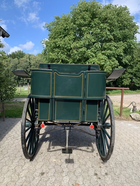 Historische Kutsche - Einspänner Verwendung: Gouvernanten-Tonneau für Fahrten mit Kindern (kleiner hist. Kindersitz ist dabei) Baujahr: ca. 1907 Zustand: sehr gut, sofort einsatzbereit Technische Details: Scheibenbremse, separater Einstieg hinten, Tür voll funktionsfähig Unterbringung: steht in Stein-auf-Stein Scheune, immer trocken Einspänner-Geschirr (Selett) kann ebenfalls erworben werden